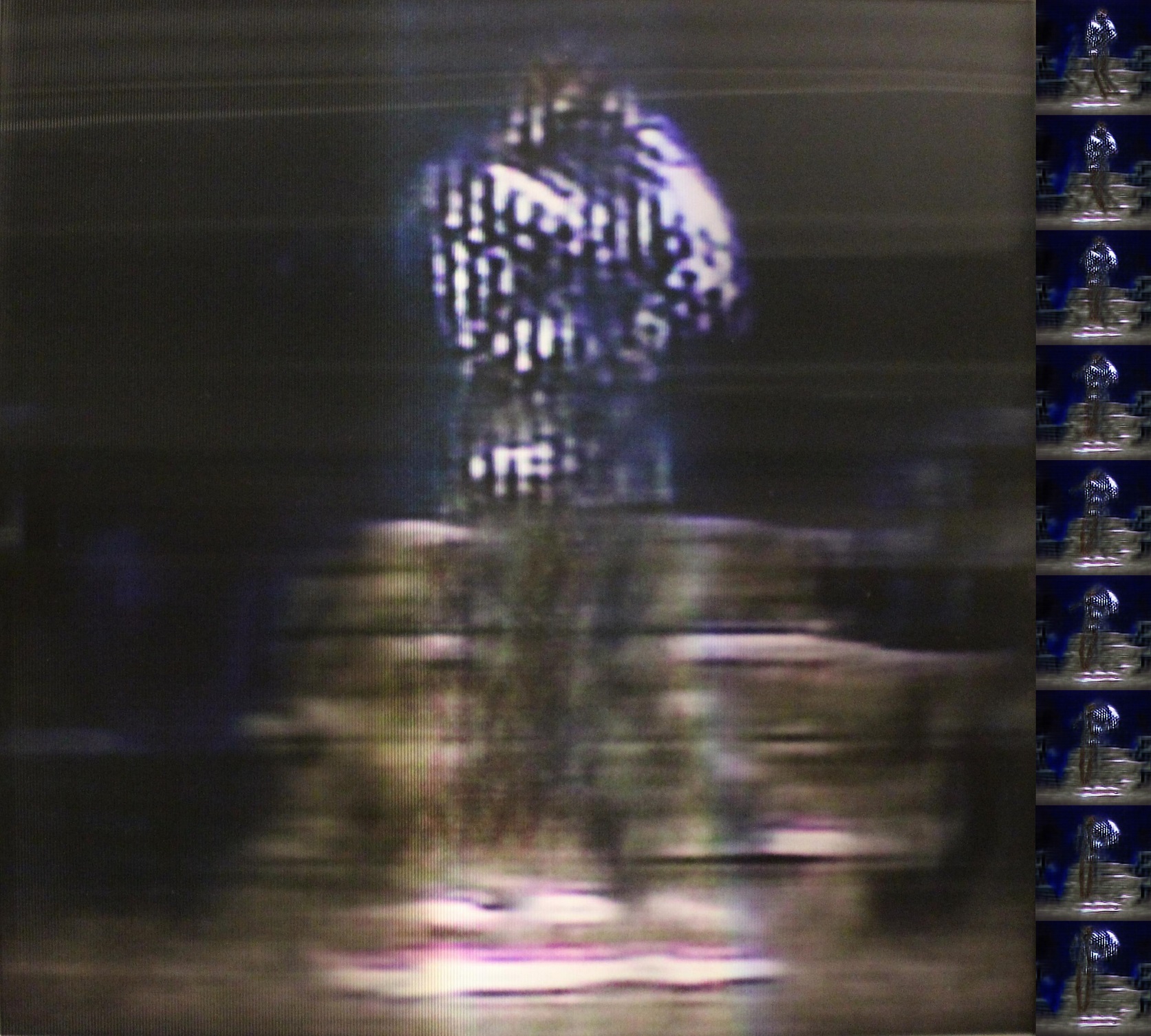 MJ X BTS 프로젝트 1: AI를 학습시키는 과정에서 아직 완전히 학습이 되지 않은 불완전한 데이터로부터 생성된 마이클 잭슨의 이미지. 화려한 무대 위의 은빛 재킷은 깃털과 같이 날아가버리고 본질, 즉 움직임만이 남아있는 모습을 담아냈다.
